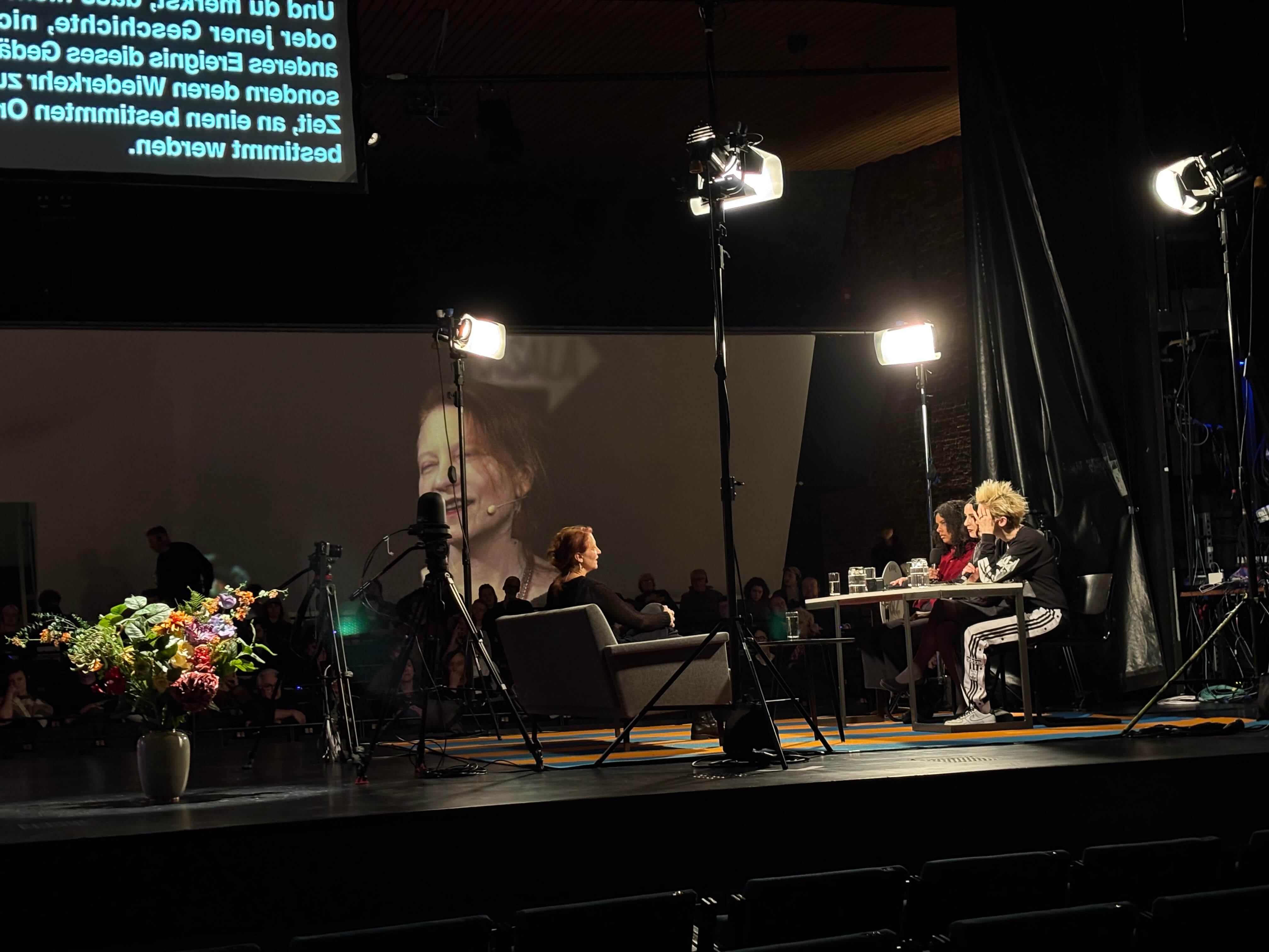 Auf drei Bühnen des Erinnerns durchkreuzen sich weit auseinanderliegende Orte, Zeiten, Ereignisse, fremde und eigene Erfahrungen, Anwesendes und Abwesendes. Die Zuschauer*innen und Zuhörer*innen können sich im Raum frei bewegen und sich den einzelnen Stationen auf verschiedenen Kanälen per Infrarotkopfhörer zuschalten.